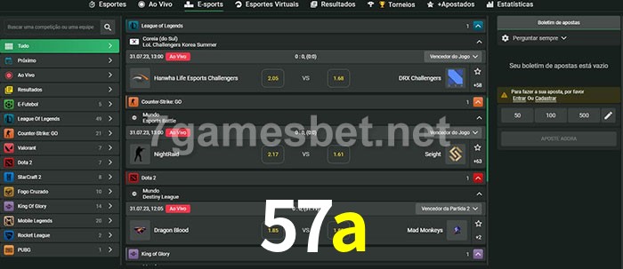 A aposta 57a oferece aos jogadores a experiência mais conveniente de apostas em eSports!